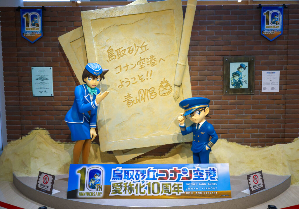 こちらの空港は2015年に鳥取空港を全国に発信するため、「鳥取砂丘コナン空港」と愛称化されてから今年で10年目を迎えます。