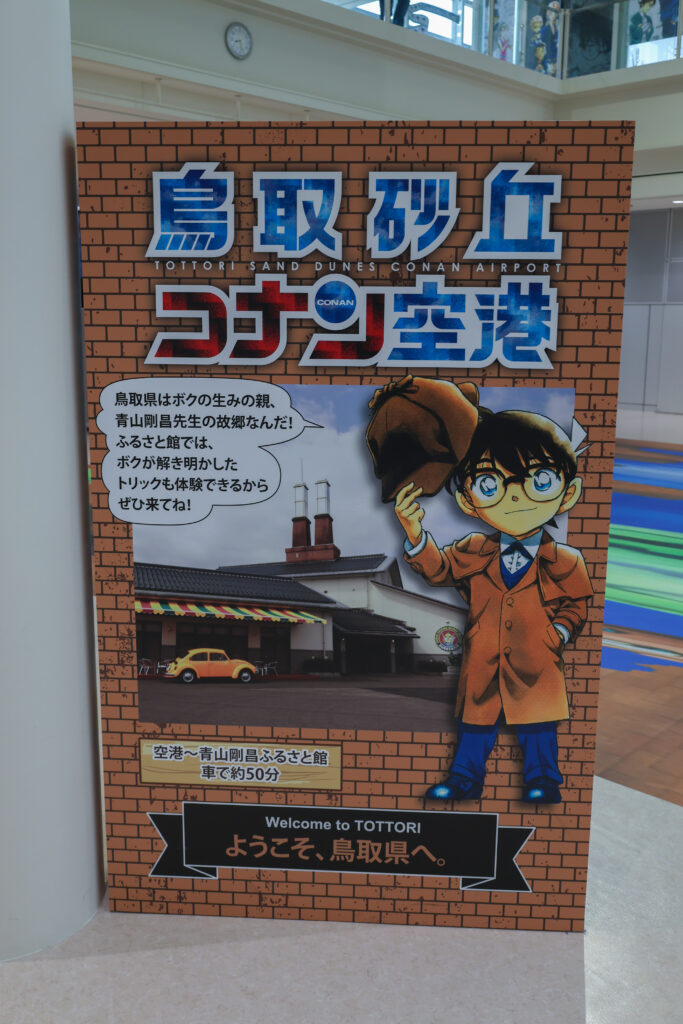 鳥取の観光と言うと砂丘がぱっと思い浮かびますが、それ以外にも魅力的な観光スポットを紹介してくれています。空港についてこんな目を引く案内があったら楽しいですよね。コナン君ナイス!